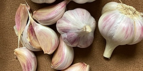 Ail à tige rigide avec stries violettes. Saveur plus rafinée que l'ail Music. Bulbes composés de 6 à 10 gousses. À découvrir. Petit bulbe. Produit certifié biologique par Ecocert Canada
