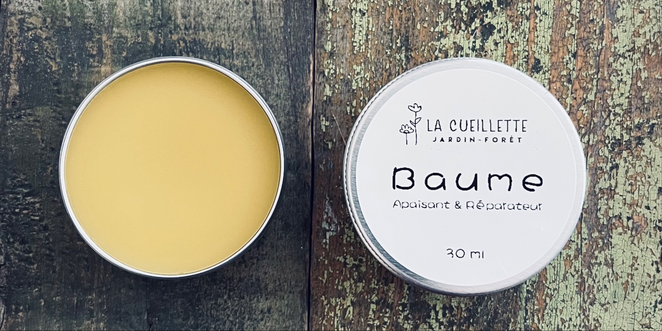 Huile de tournesol (Heliantus annuus seed oil), Calendule officinale (Calendula officinalis), Camomille Allemande (Matricaria recucita), Achilée millefeuille (Achillea millefolium), Verge d'or du Canada (Solidago canadensis), Beurre de karité (Butyrospermum parkii butter), Cire d'abeille (Cera alba), Huile essentielle de lavande (Lavandula angustifolia oil), Huile essentielle de géranium bourbon (Pelargonium x asperum oil), Vitamine E (Tocopherol)