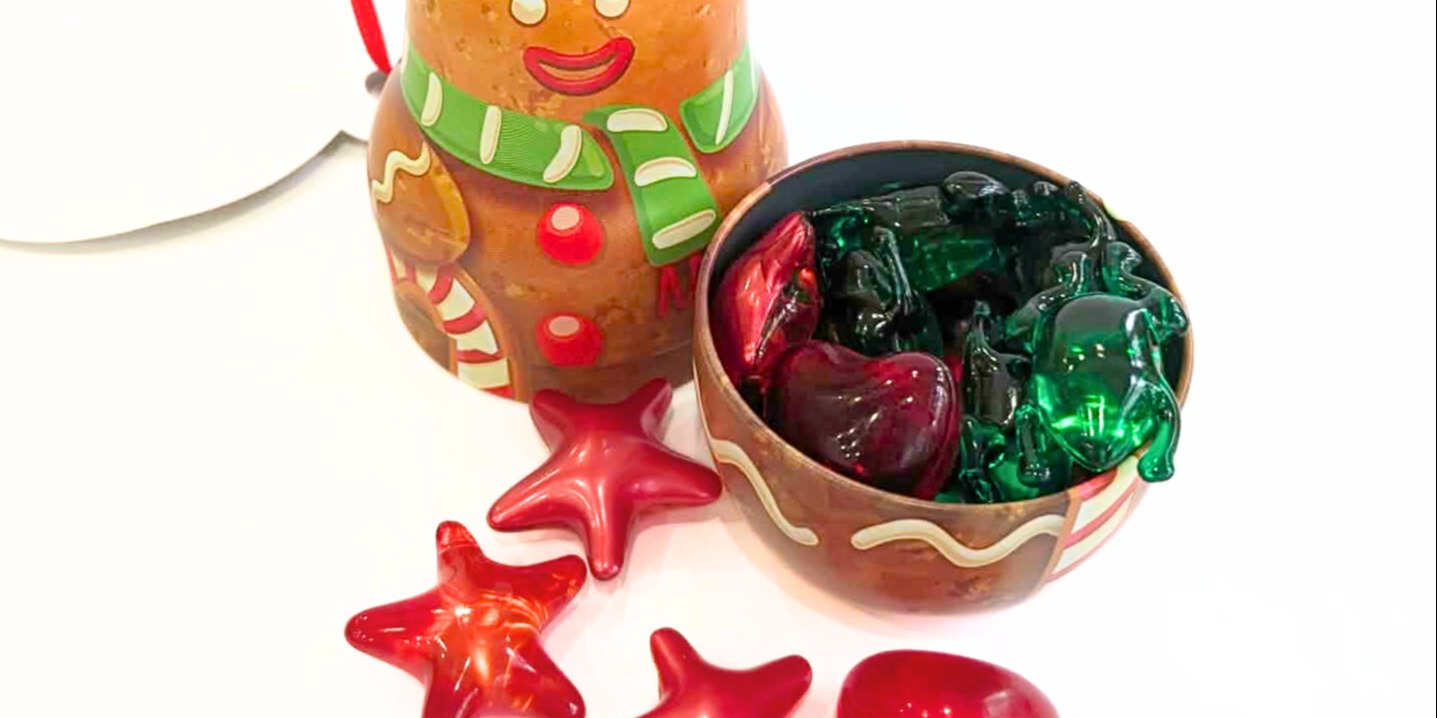 À la boutique, nous avons de petites boîtes métalliques d'environ 10cm de haut, qui s'ouvrent en deux. Elles se suspendent au sapin et sont réutilisables d'année! On peut y glisser un petit mot gentil, des petits chocolats, savons ou perles de bain! Voyez nos options possibles! D'un côté, un bonhomme d'épice, et del'autre, un sapin.