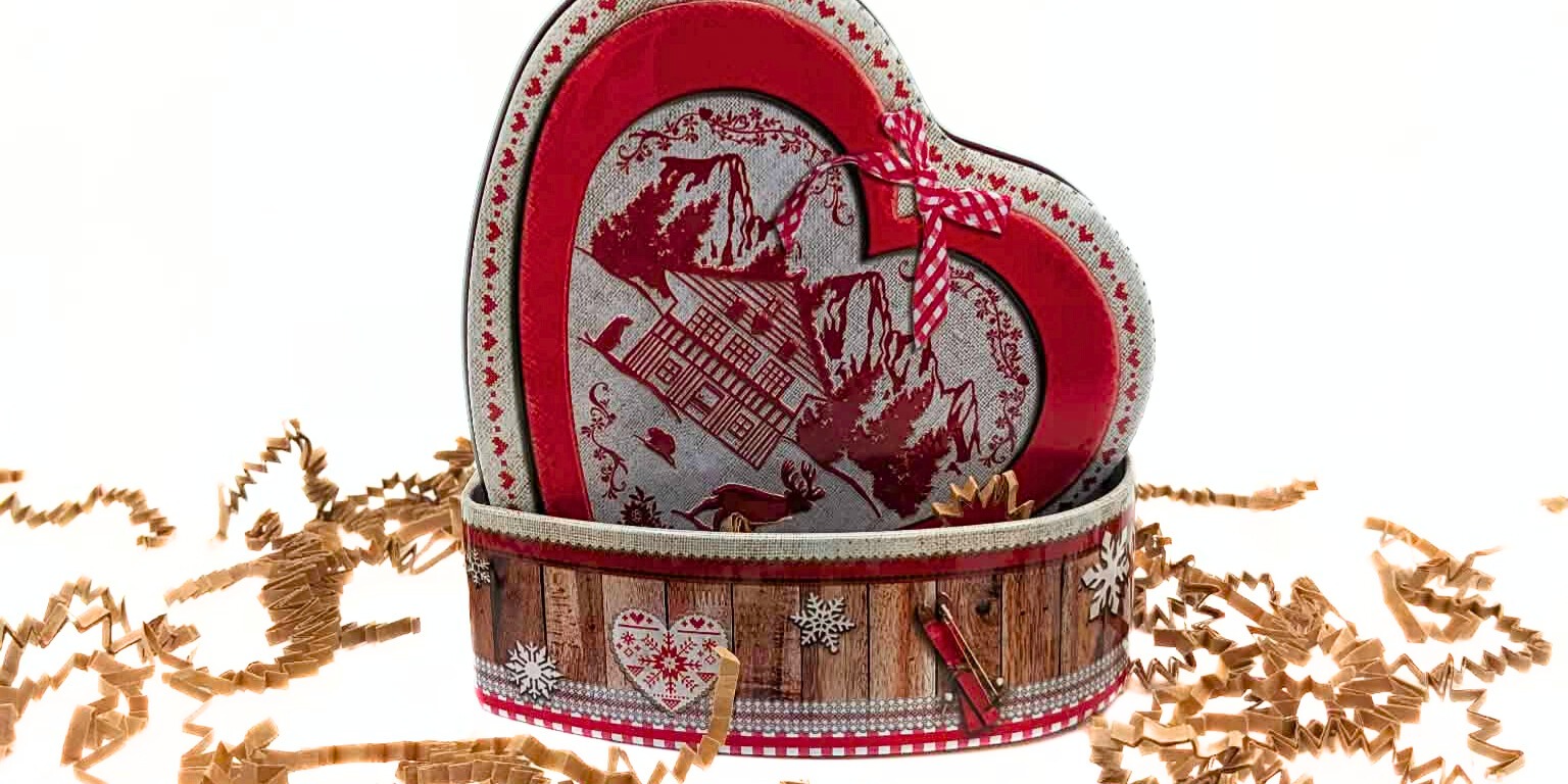 Nos petites boîtes métalliques de Noël sont environ 10cm de haut et s'ouvrent en deux. Elles se suspendent au sapin et sont réutilisables d'année! On peut y glisser un petit mot gentil, des petits chocolats, savons ou perles de bain! Voyez nos options possibles! D'un côté, un bonhomme d'épice, et del'autre, un sapin.