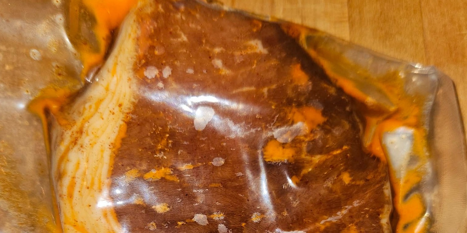 Porc, sirop d'érable, huile végétale, sauce soya, piment chipotle en poudre, ail, vinaigre de vin rouge.