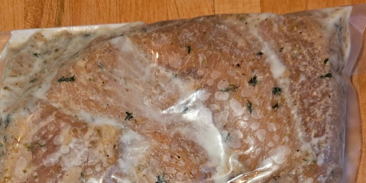Porc, huile végétale, jus citron, ail, moutarde de digeon, sauce soya, origna, persil, sirop dérable, poivre et oignon en poudre.