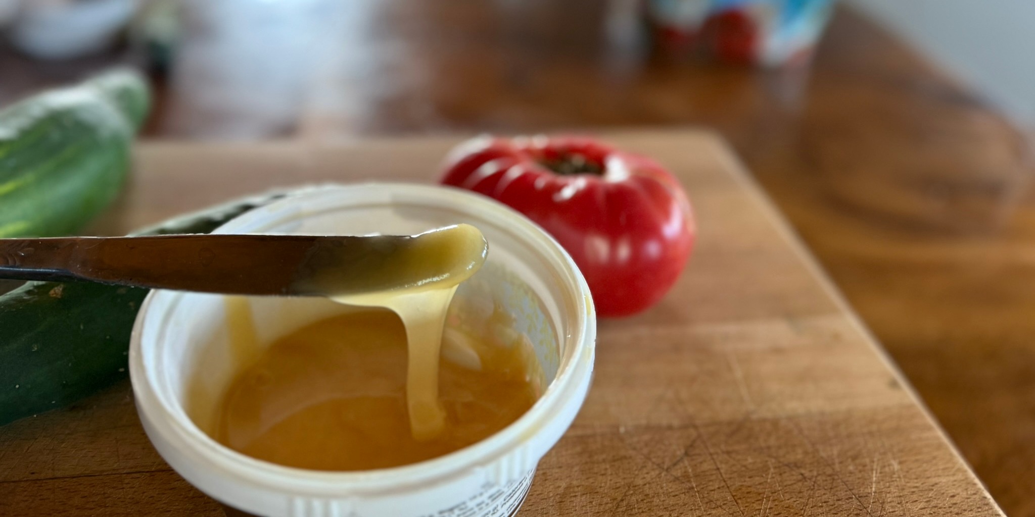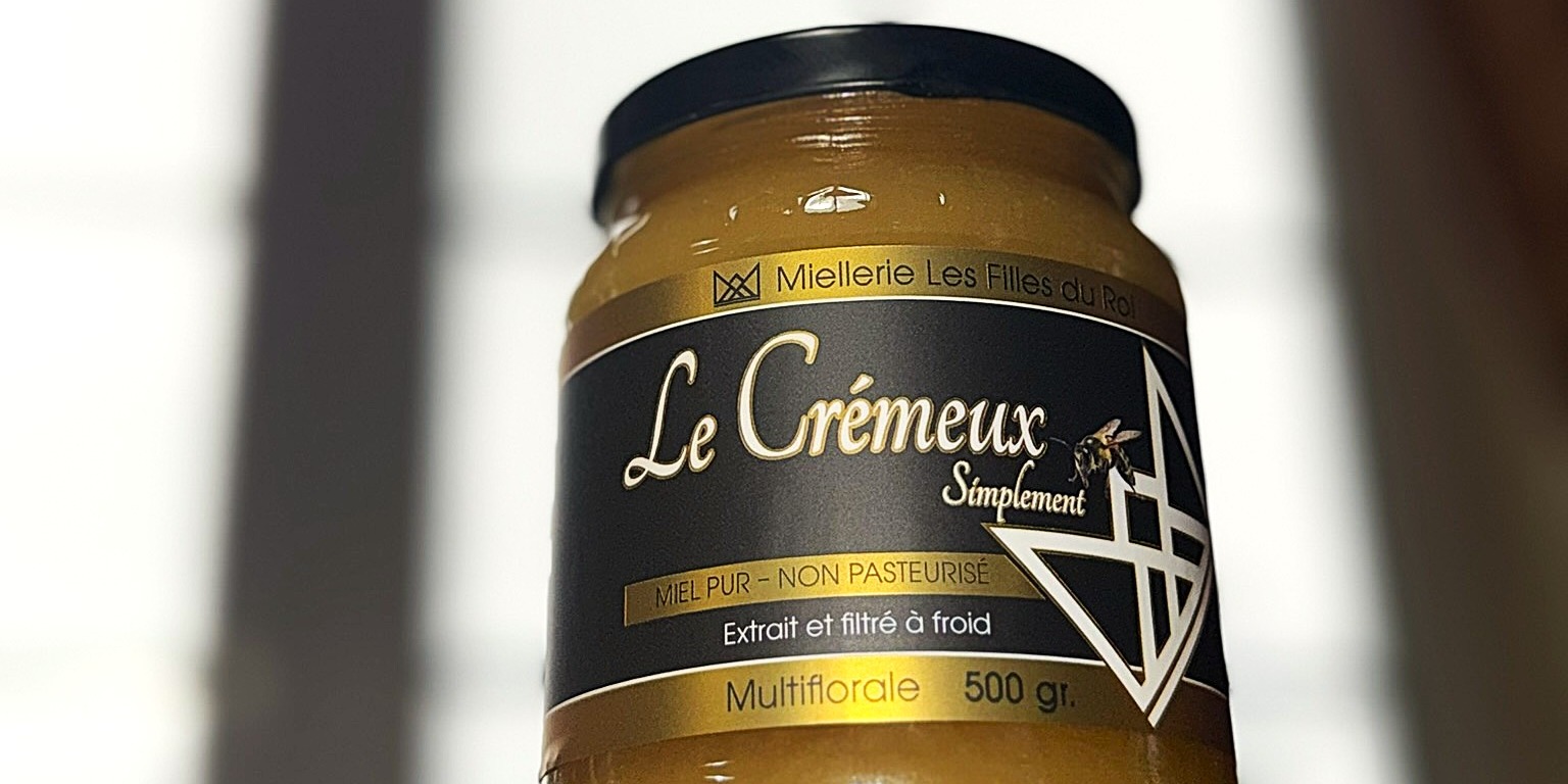 Miel crémeux baraté manuellement fait à partir de miel liquide ensemensé de cristaux doux.