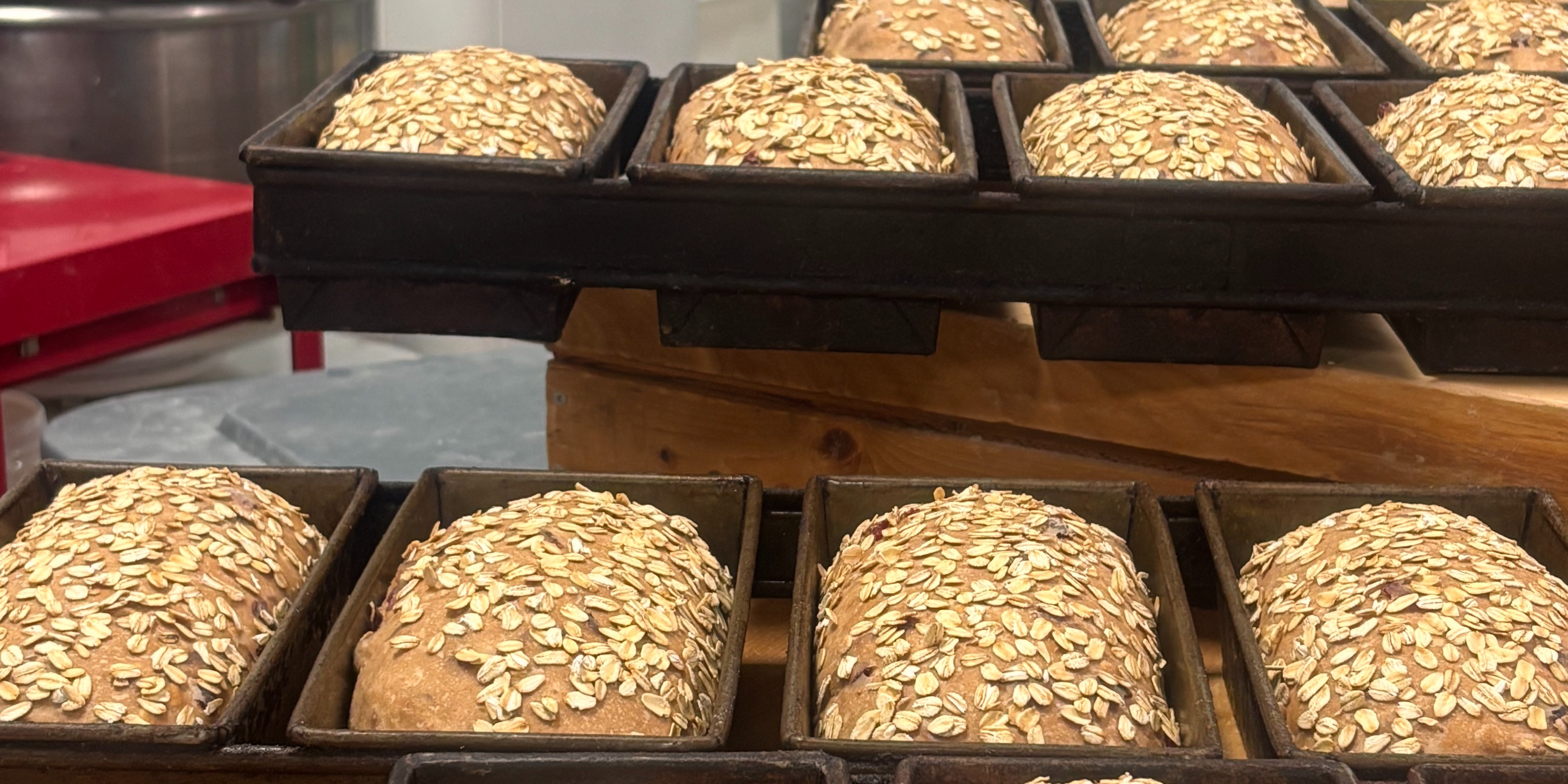 Farine bise moulue à la boulangerie, eau, canneberges séchées, flocons d'avoines, levain, lait, huile de tournesol, miel du Rûcher des Aulnaies, sel, cannelle et levure.