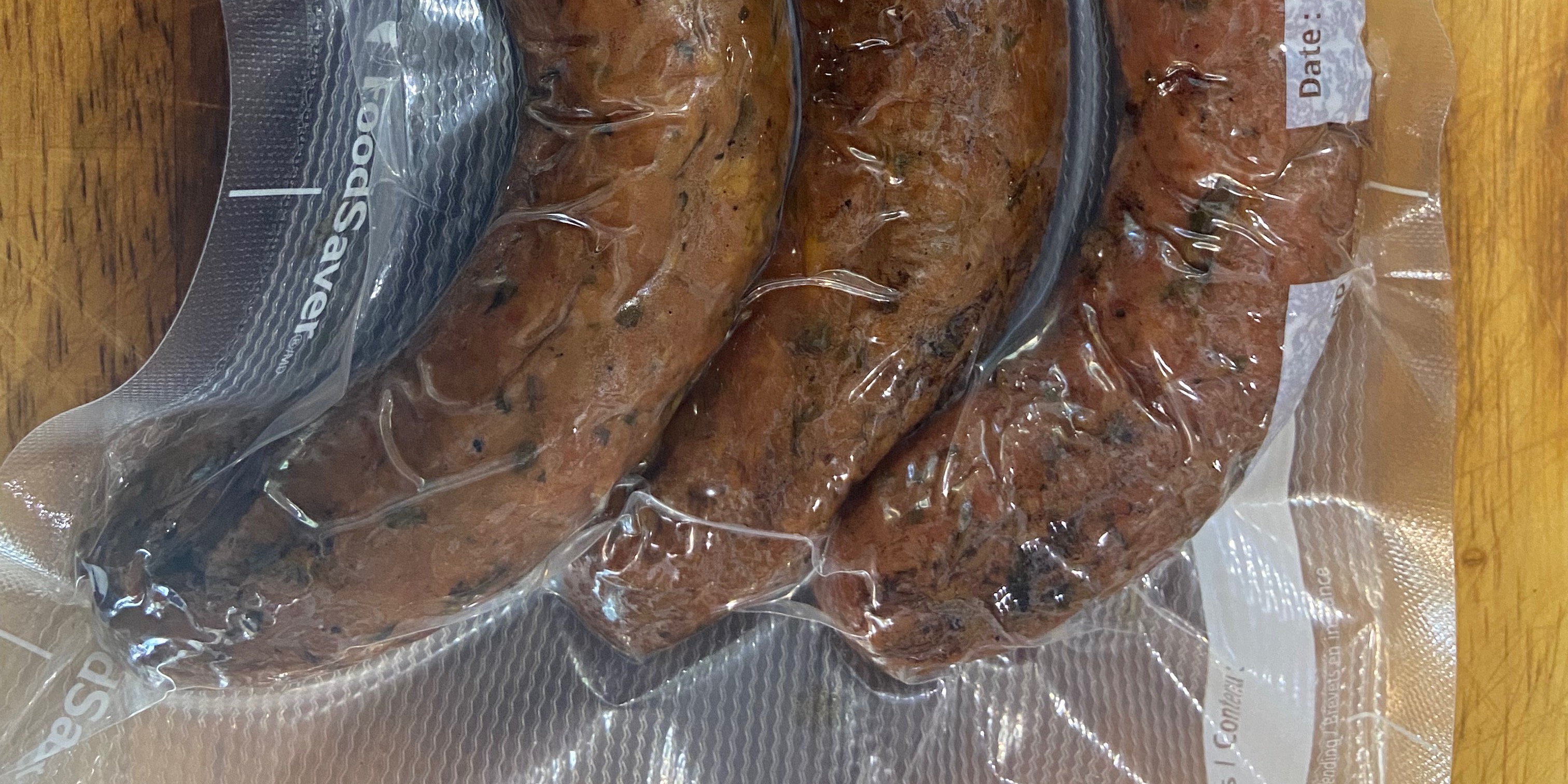 Saucisses maison aux herbes fumées sous-vide.