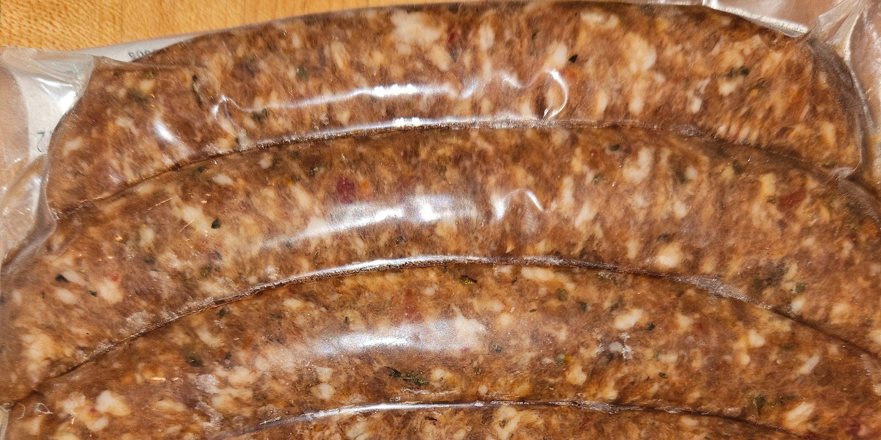 Porc, tomates séches dans l'huile, pâte de tomate, sel, basilic, lait en poudre, ail et oignon en flocon.