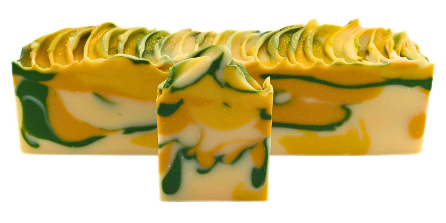 Découvrez notre savon coloré fabriqué presqu'uniquement avec des huiles essentielles! Les herbes de cèdre, sauge et coriandre rehaussent l'huile essentielle de citron. Les doucheurs du matin adorent ce type d'odeur, tout comme celles qui apprécient les effluves d'agrumes!